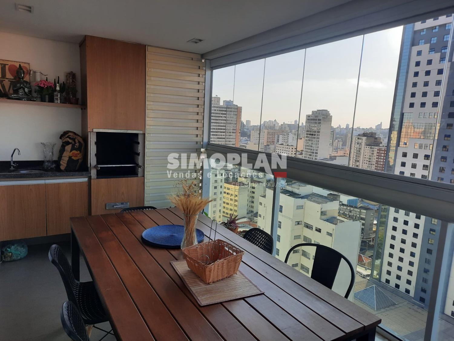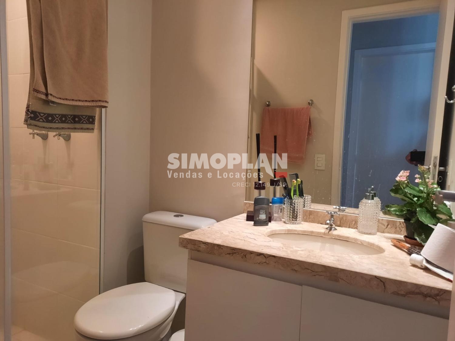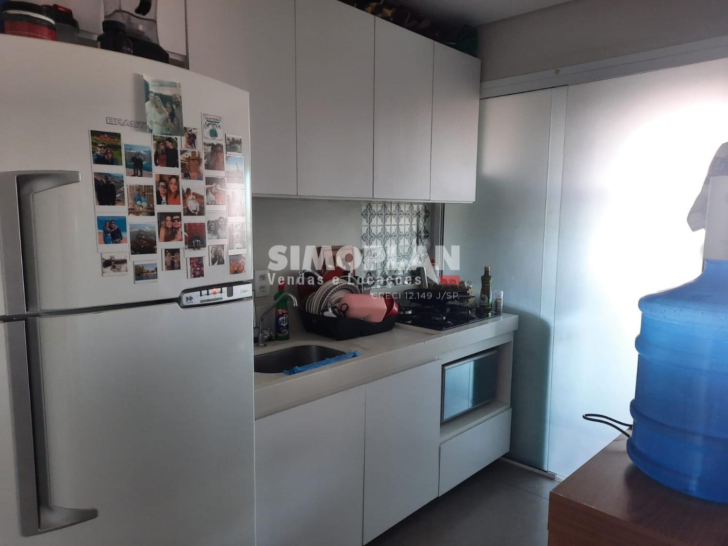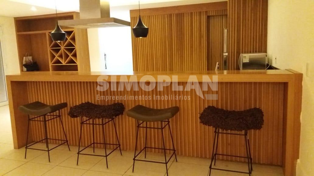 Living para 2 ambientes com revestimento em madeira, espelhos e varanda gourmet com churrasqueira. Possui Hack para TV com teto de gesso e iluminação embutida. Cozinha americana planejada com cooktop e area de serviço com armario e aquecedor a gas. Area intima com 2 dormitorios planejados sendo 1 suite com closet.