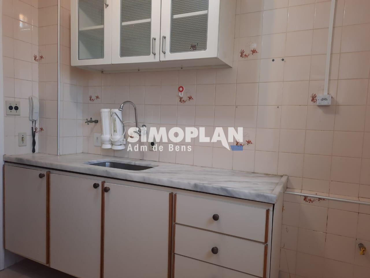 Apartamento com 01 dormitório com armários, living para 2 ambientes com sacada, banheiro social, cozinha com armários, área de serviço e WC.