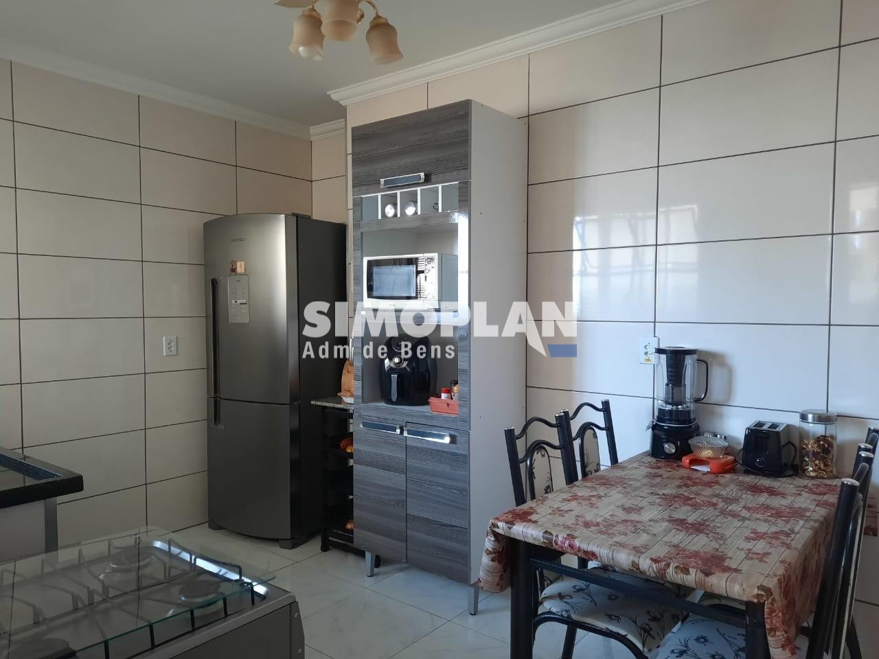 O apartamento tem 2 dormitórios + 1 com armários, banheiro social com armários e box blindex, living 2 ambiente com sacada, cozinha com armários, área de serviço e W.C.