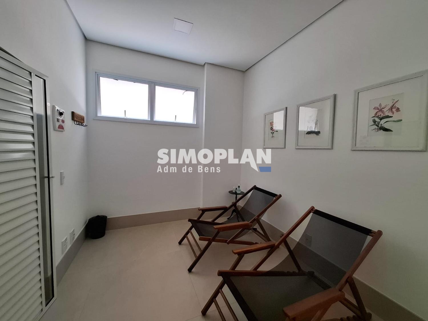 2 suítes com armários e ar condicionado, janelas elétricas, living 2 ambientes com ar condicionado e sacada, lavabo, cozinha americana e área de serviço. Apto com aquecimento a gás.