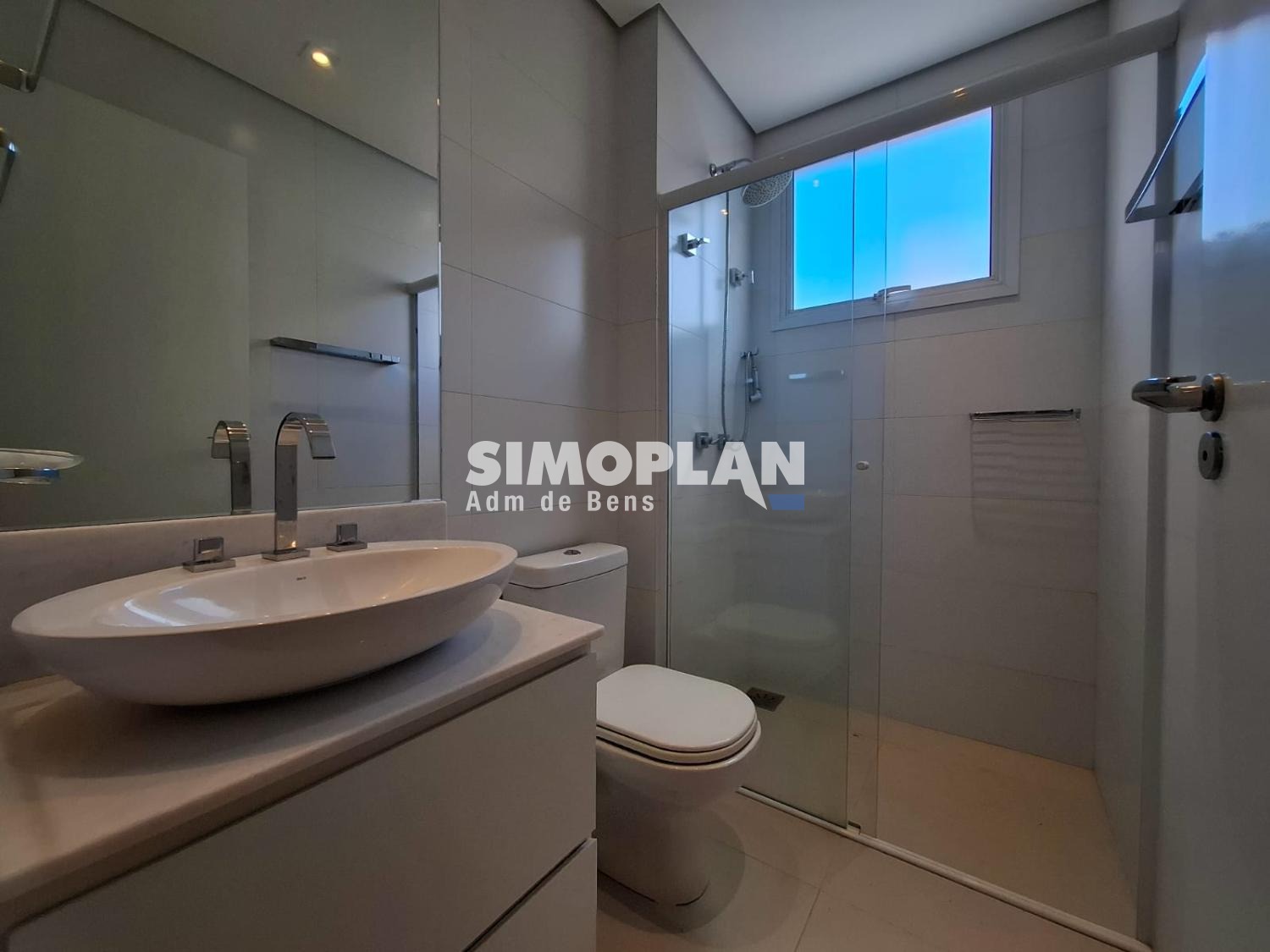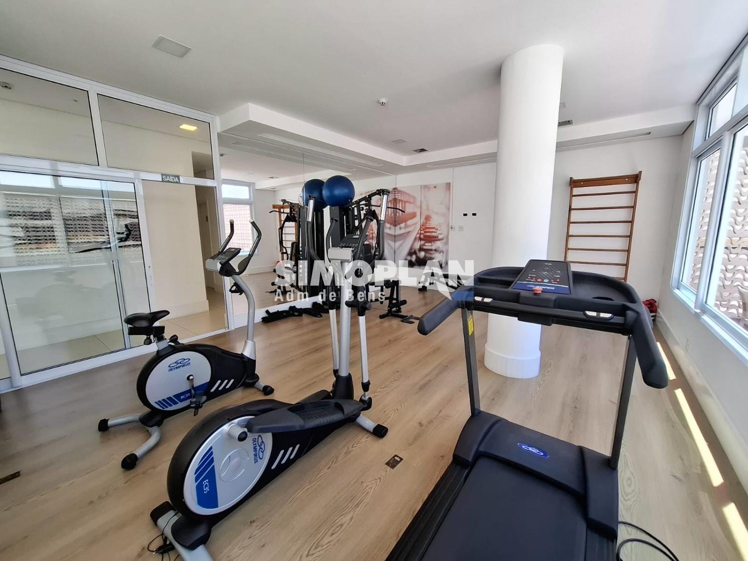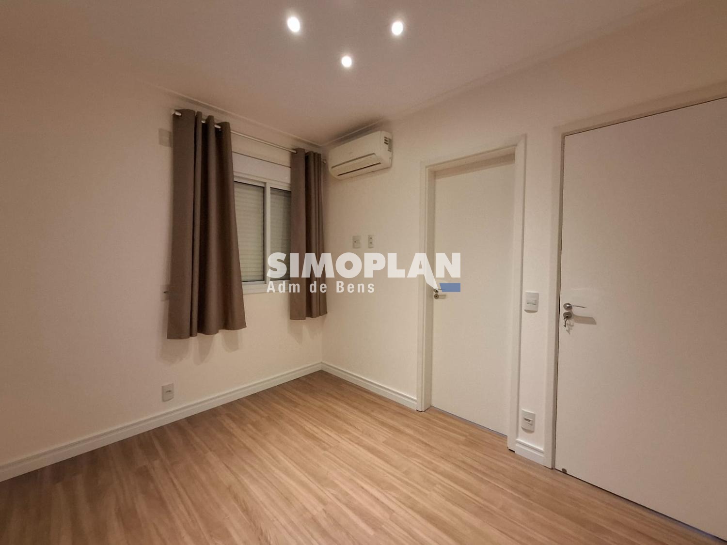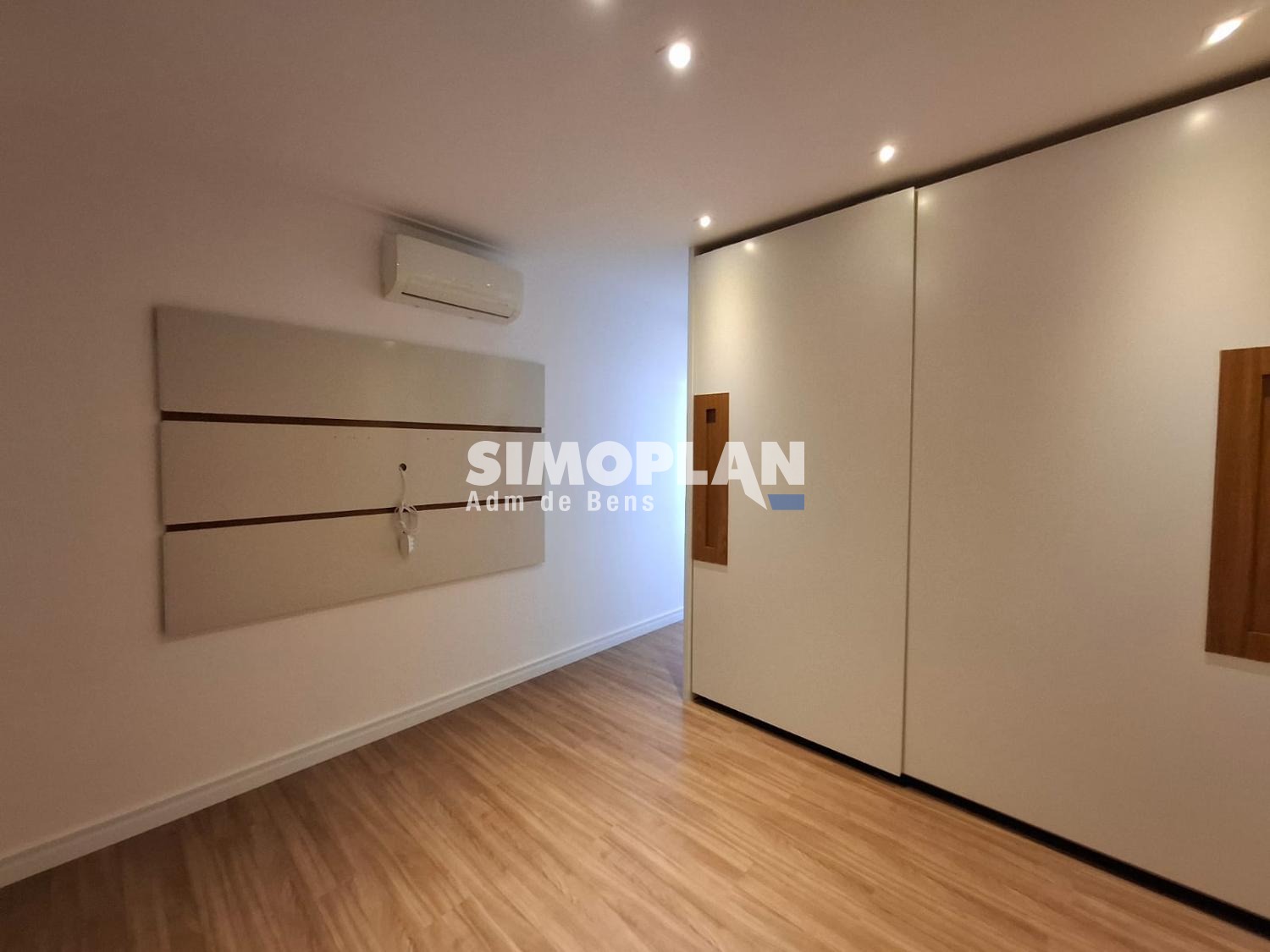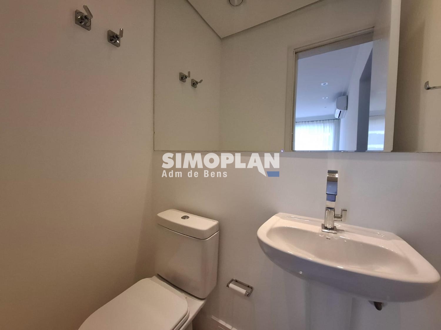 2 suítes com armários e ar condicionado, janelas elétricas, living 2 ambientes com ar condicionado e sacada, lavabo, cozinha americana e área de serviço. Apto com aquecimento a gás.