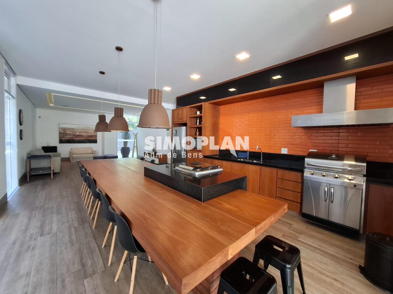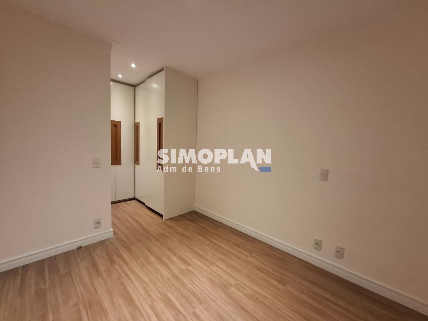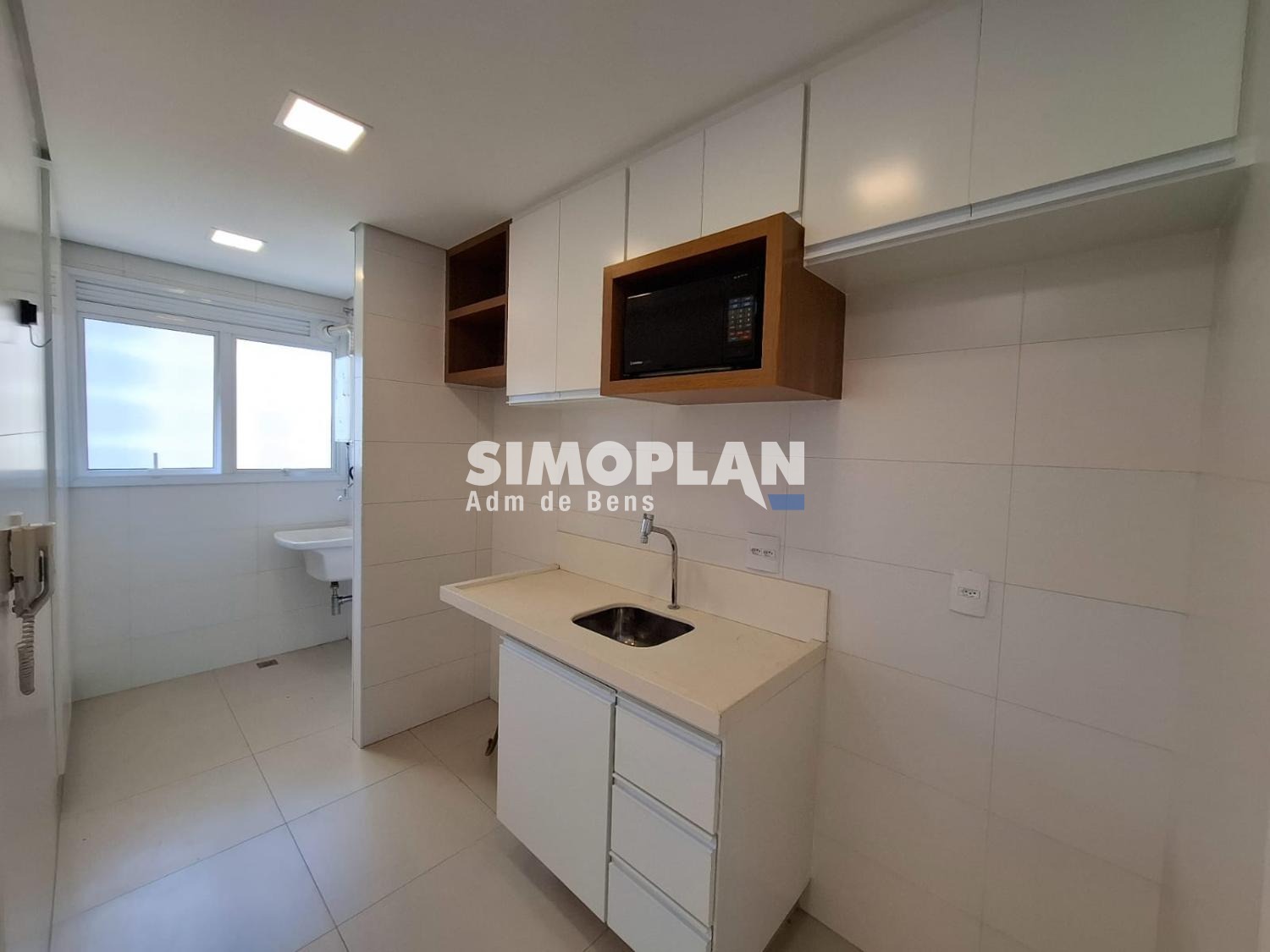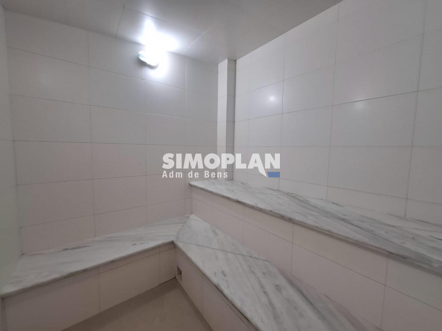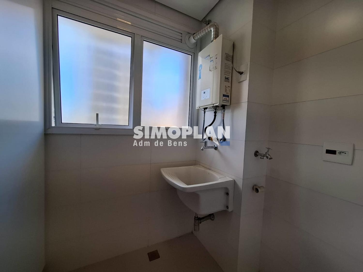 2 suítes com armários e ar condicionado, janelas elétricas, living 2 ambientes com ar condicionado e sacada, lavabo, cozinha americana e área de serviço. Apto com aquecimento a gás.