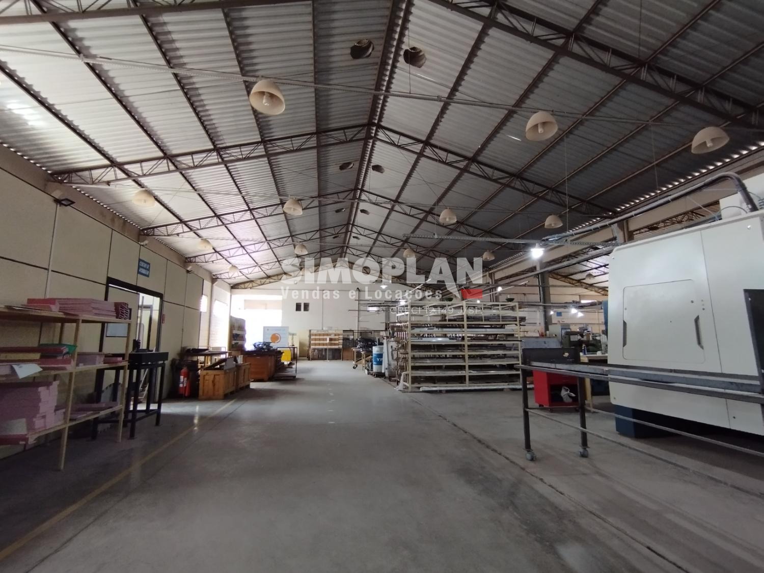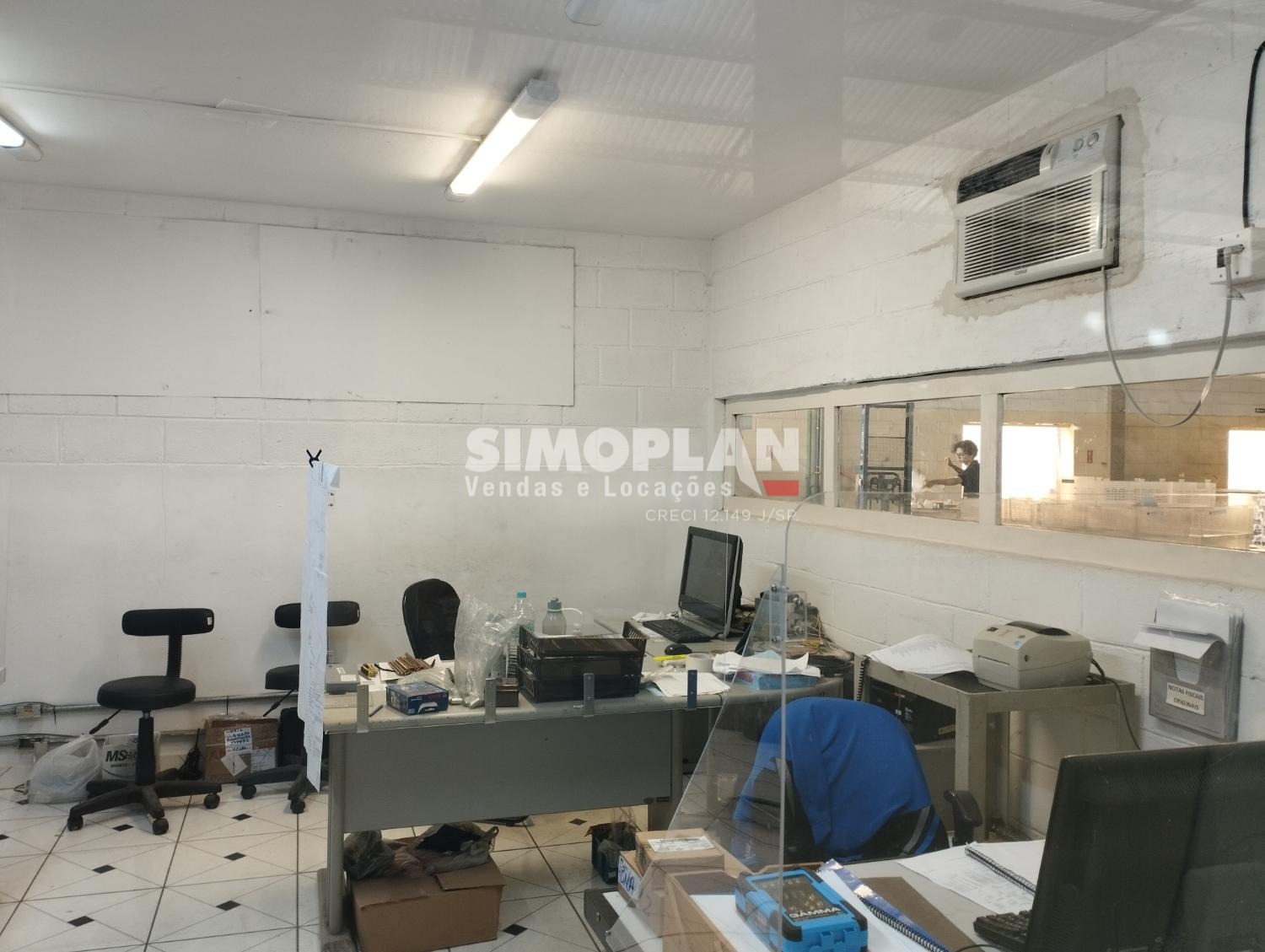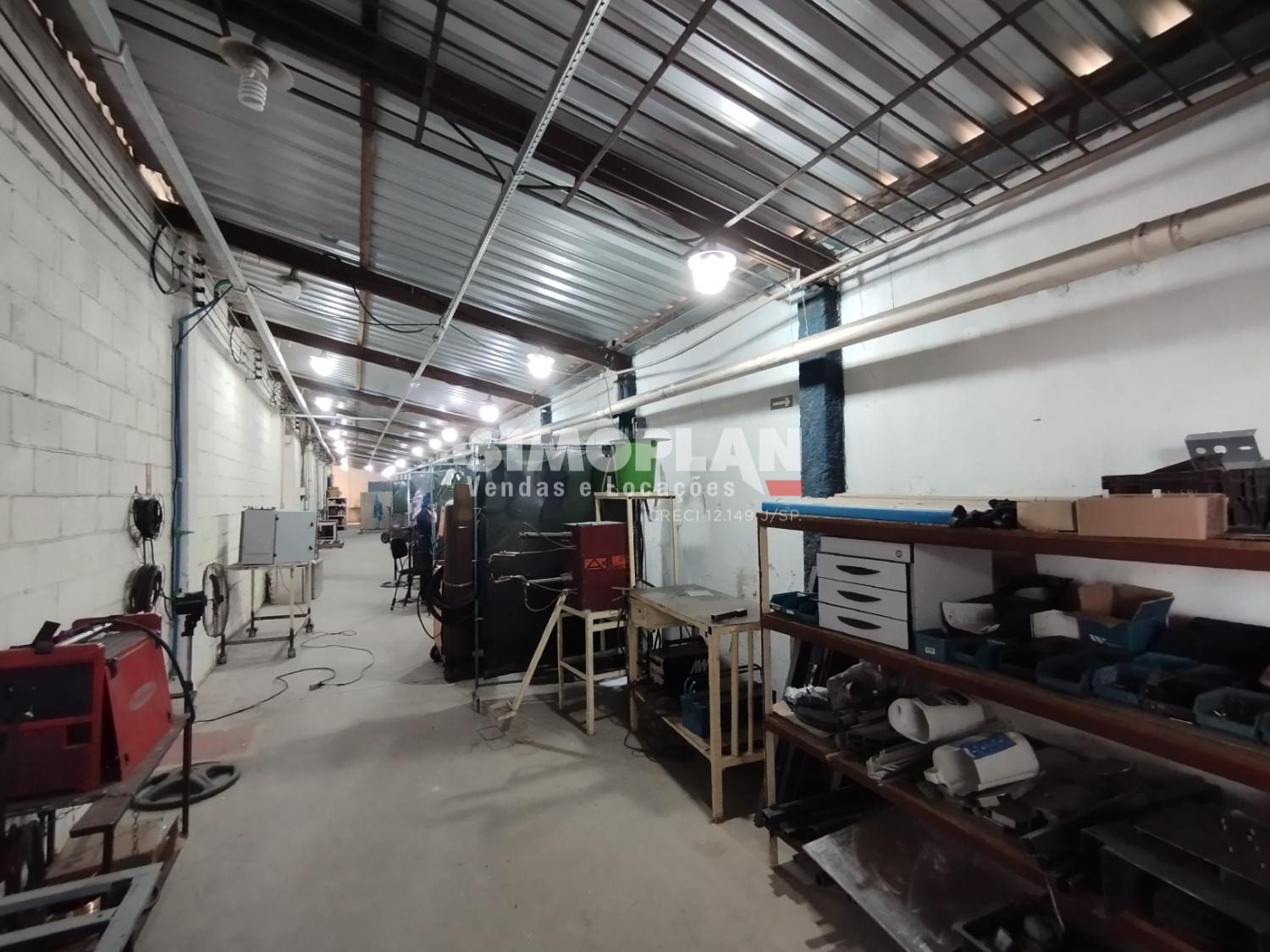 O imóvel conta com dois galpões, escritório com ar condicionado, mezanino, banheiros, cozinha, vestiário, recepção e parte para o estacionamento.