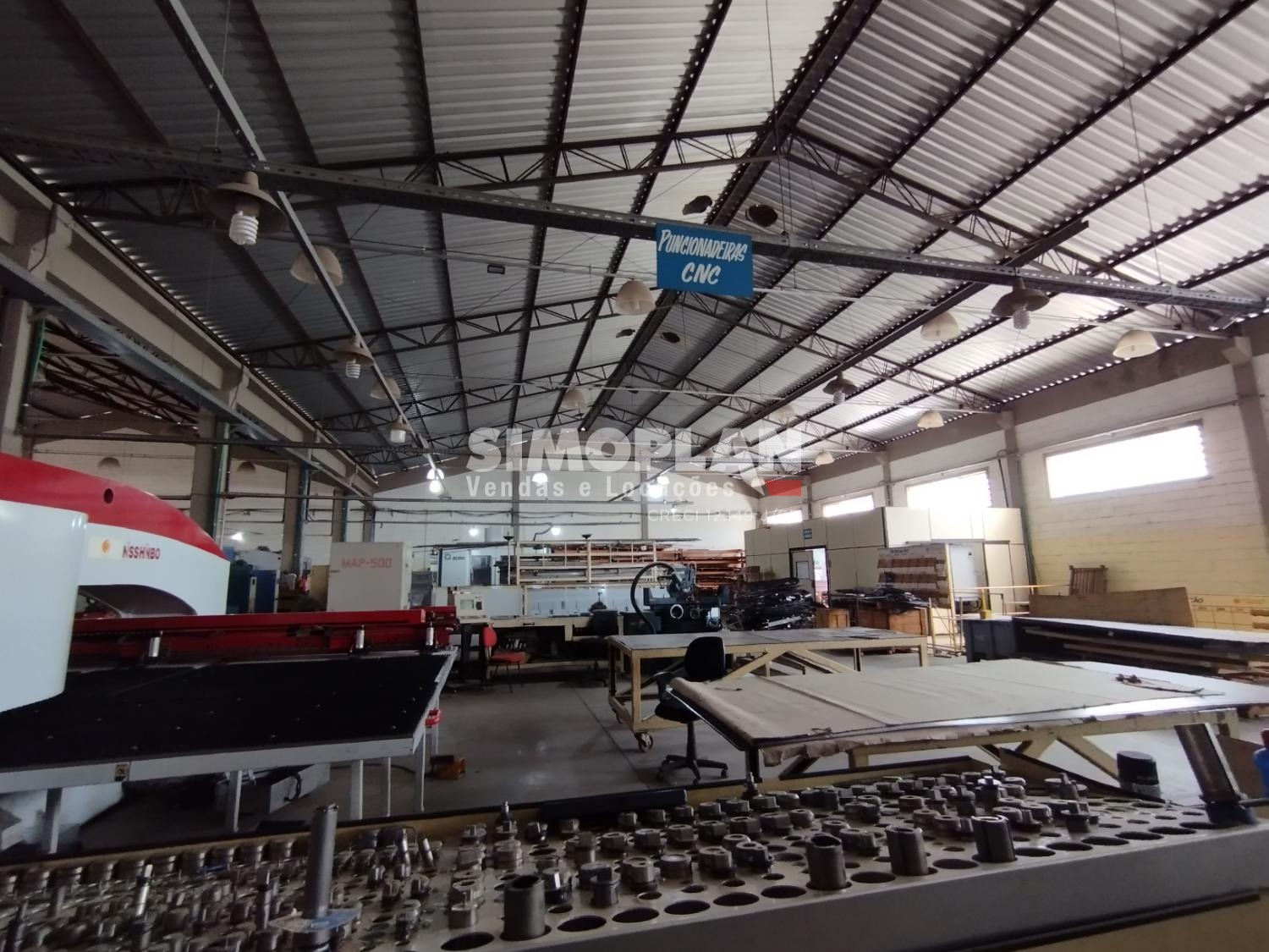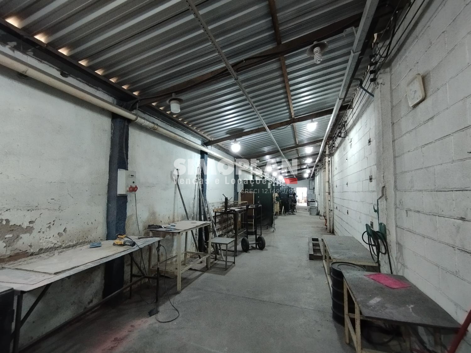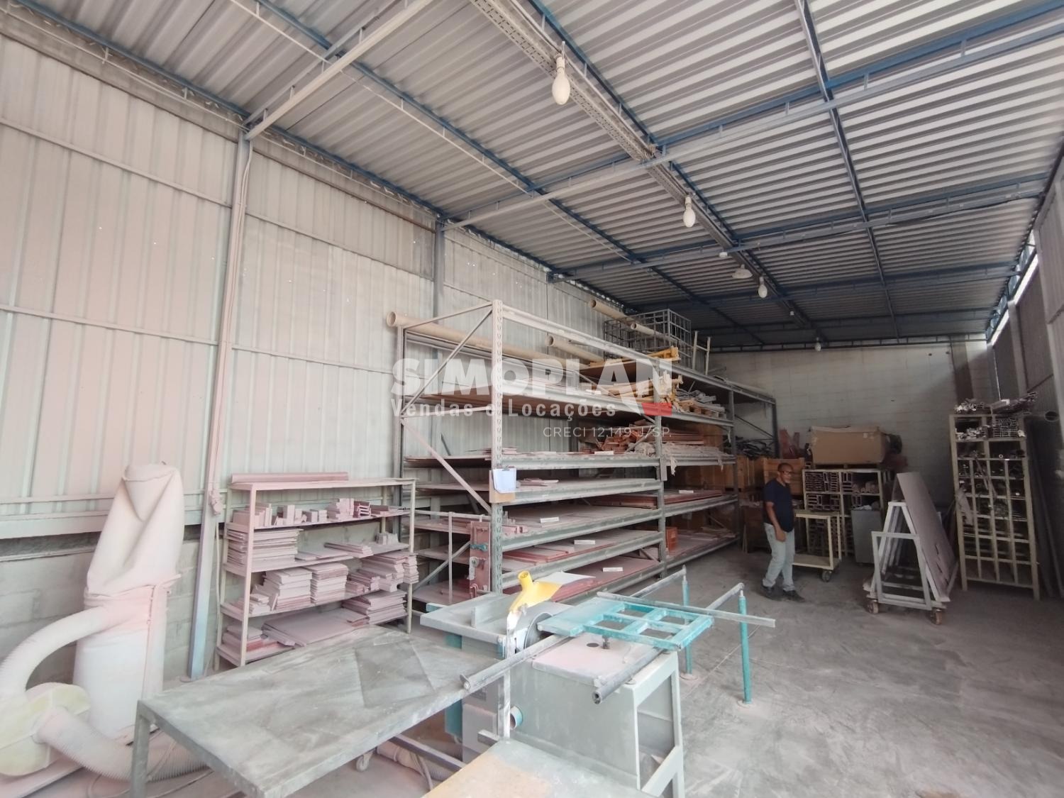 O imóvel conta com dois galpões, escritório com ar condicionado, mezanino, banheiros, cozinha, vestiário, recepção e parte para o estacionamento.
