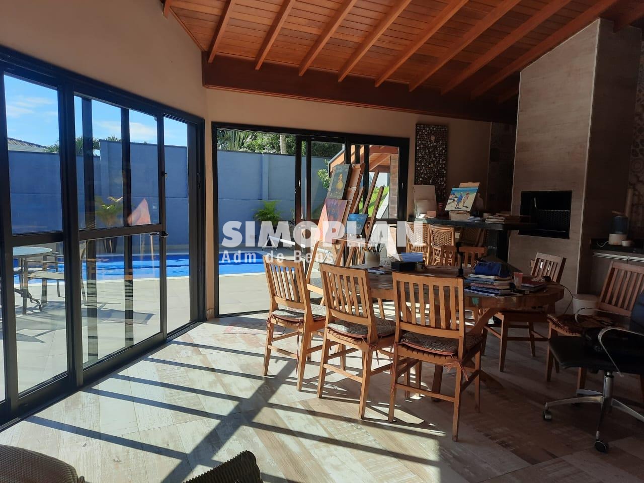 O imóvel é composto de 03 suítes com armários, closet e sacada, sala de estar com lareira, sala de jantar, home, escritório, lavabo, cozinha planejada, despensa, área de serviço, WC. espaço gourmet com churrasqueira, piscina aquecida e paisagismo.