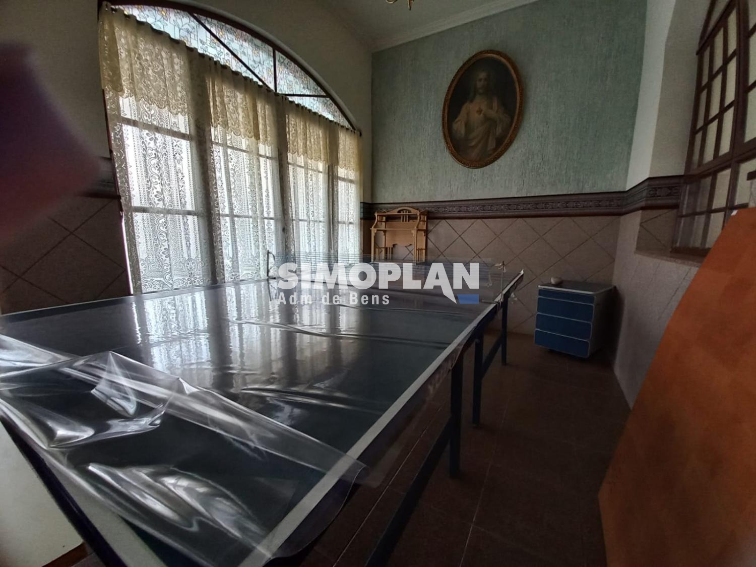 Salão de festas, cozinha, banheiro feminino e masculino, biblioteca e sala de jogos. Quarto de brinquedos, quarto de ferramentas e quarto de jardinagem.