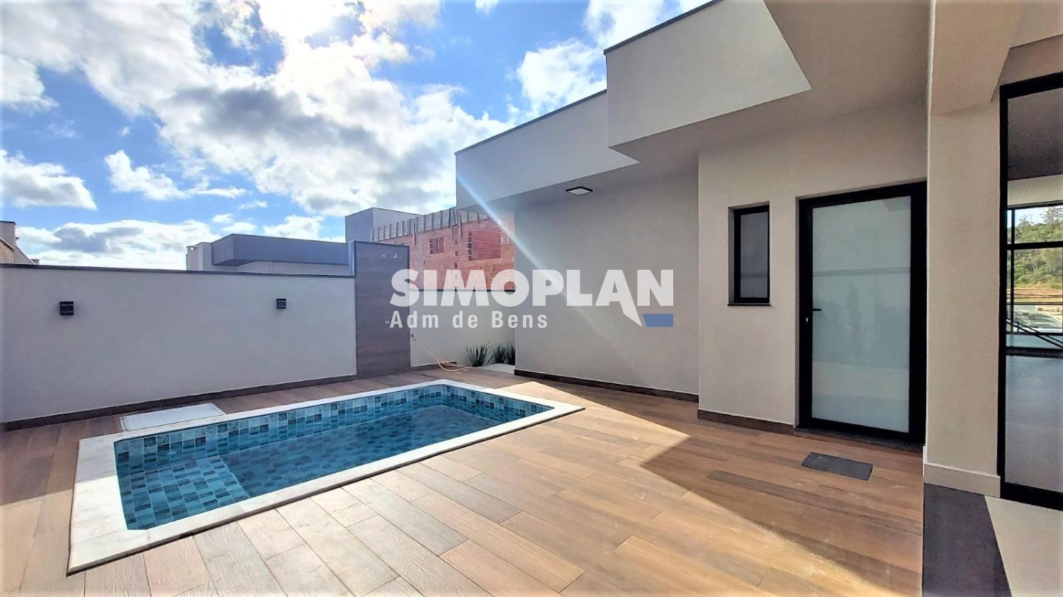 A casa é recém construída composta por 3 suítes sendo uma master, armários nas suítes, cozinha, área gourmet, sala de estar e jantar, área de serviço e piscina.