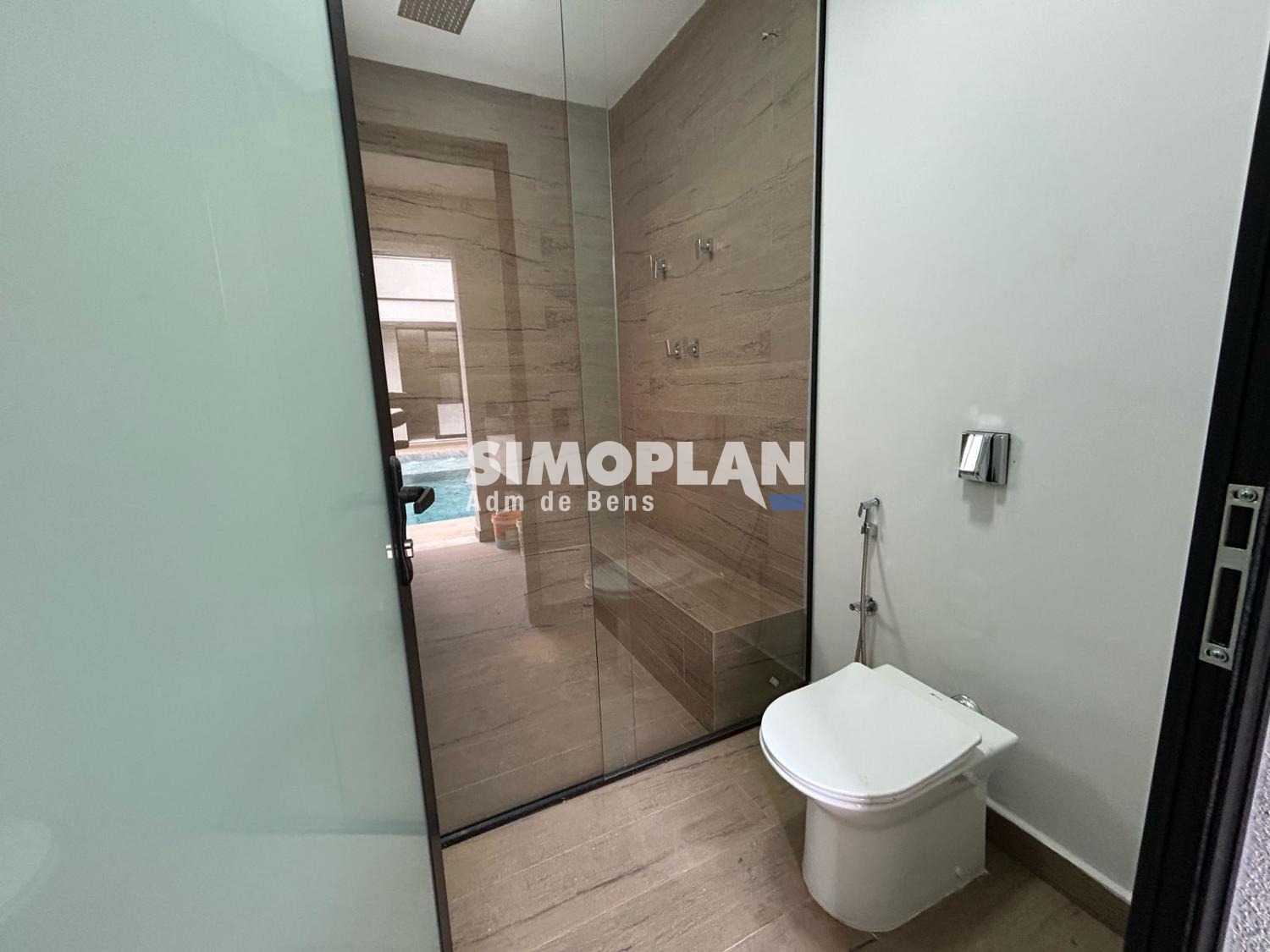 Ainda no piso inferior, a área goumert conta com churrasqueira e toda estrutura para o lazer da sua família, piscina com motores completo, iluminação e estrutura de aquecimento. Sauna a vapor com vestiário e um quarto/sala anexo para visitas.