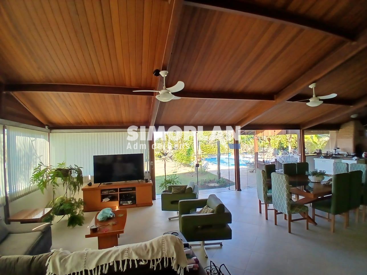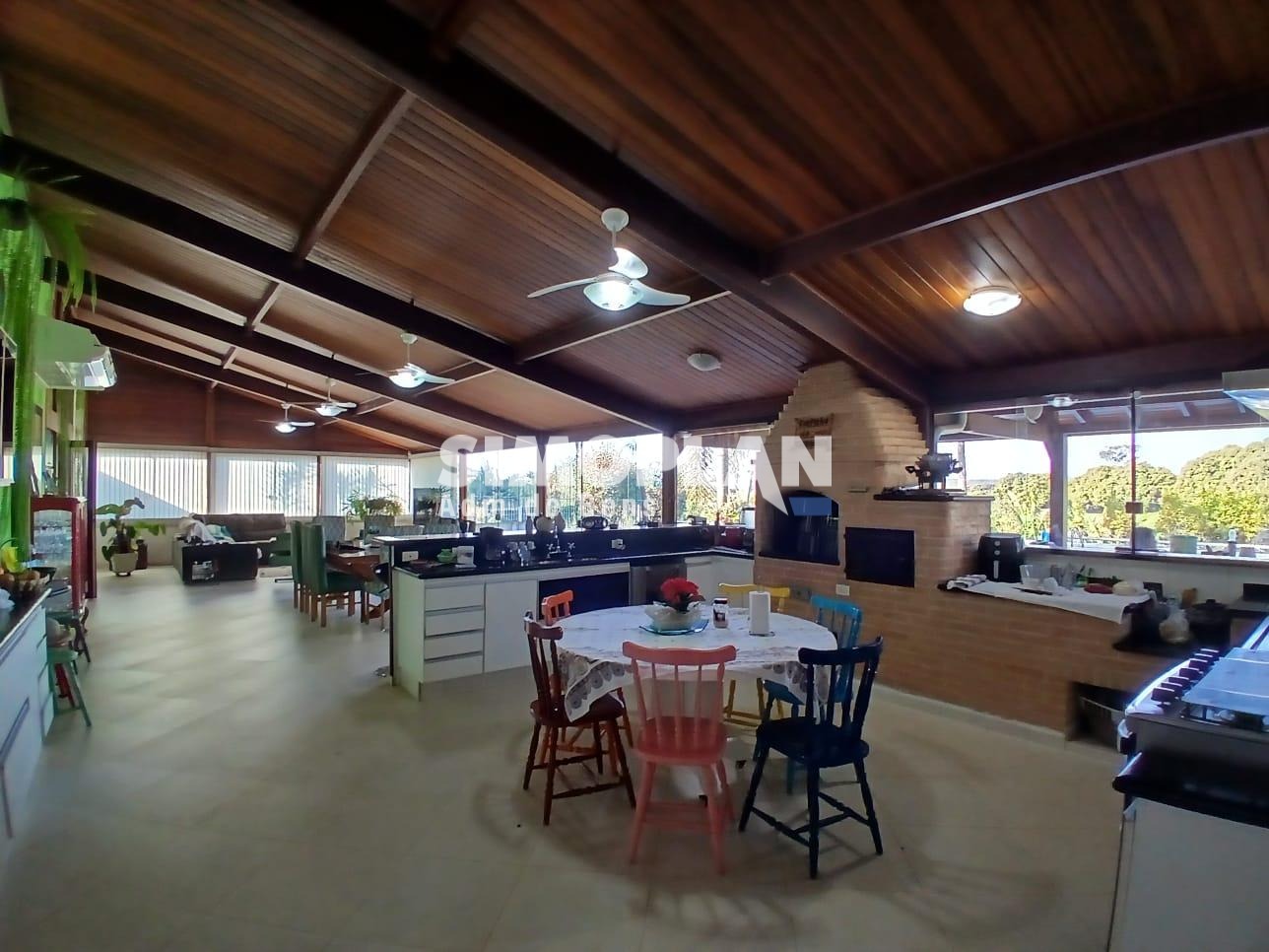 Em um terreno de 1.800 m² e 330 m² de construção, a casa é composta por 3 suítes, 5 banheiros, 2 salas, área gourmet com churrasqueira e fogão a lenha, cozinha, piscina com hidromassagem com um amplo jardim e pomar. A casa também conta com uma edícula com um quarto e banheiro.