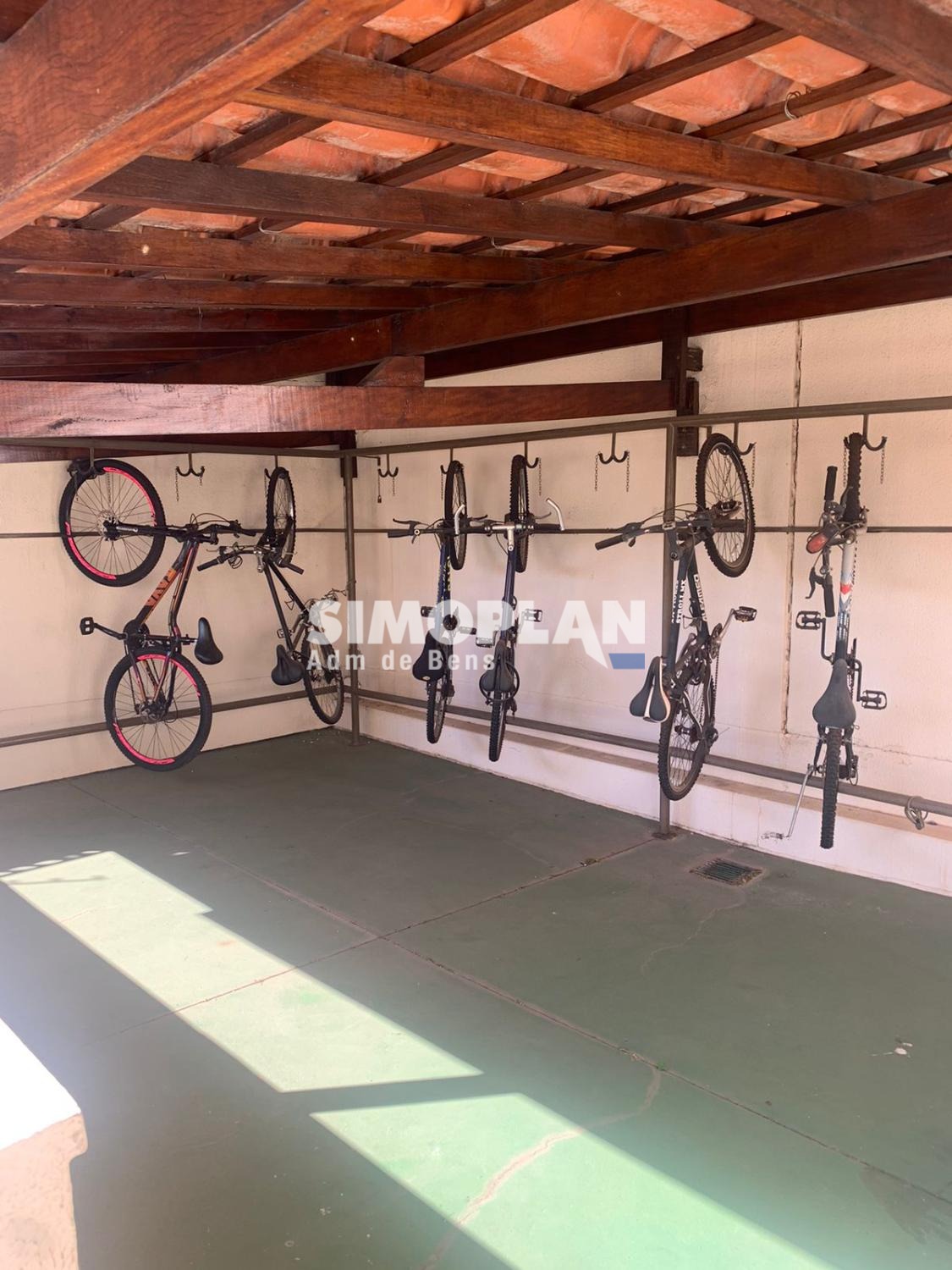 O condomínio agradável com playground, salão de festas e bicicletário.