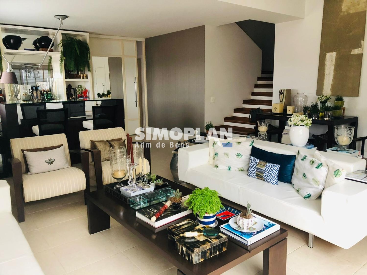 O imóvel foi elaborado com dois andares, sendo a parte inferior composta de sala, banheiro social, terraço com piscina, cozinha, 1 suíte e área de serviço e a parte superior do imóvel composta de 2 suítes.