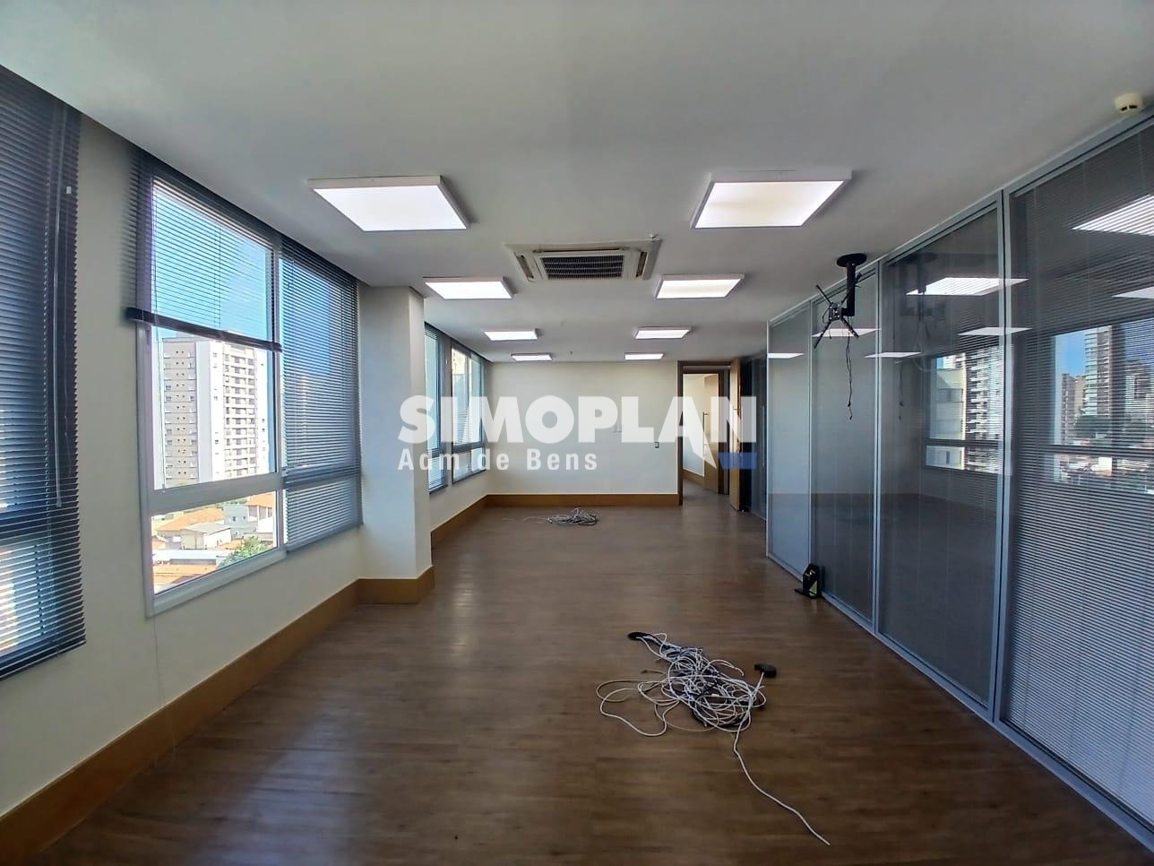 Conta com piso elevado, forro modular e ar-condicionado central, garantindo conforto e eficiência. O imóvel tem ótima iluminação natural e uma vista privilegiada.