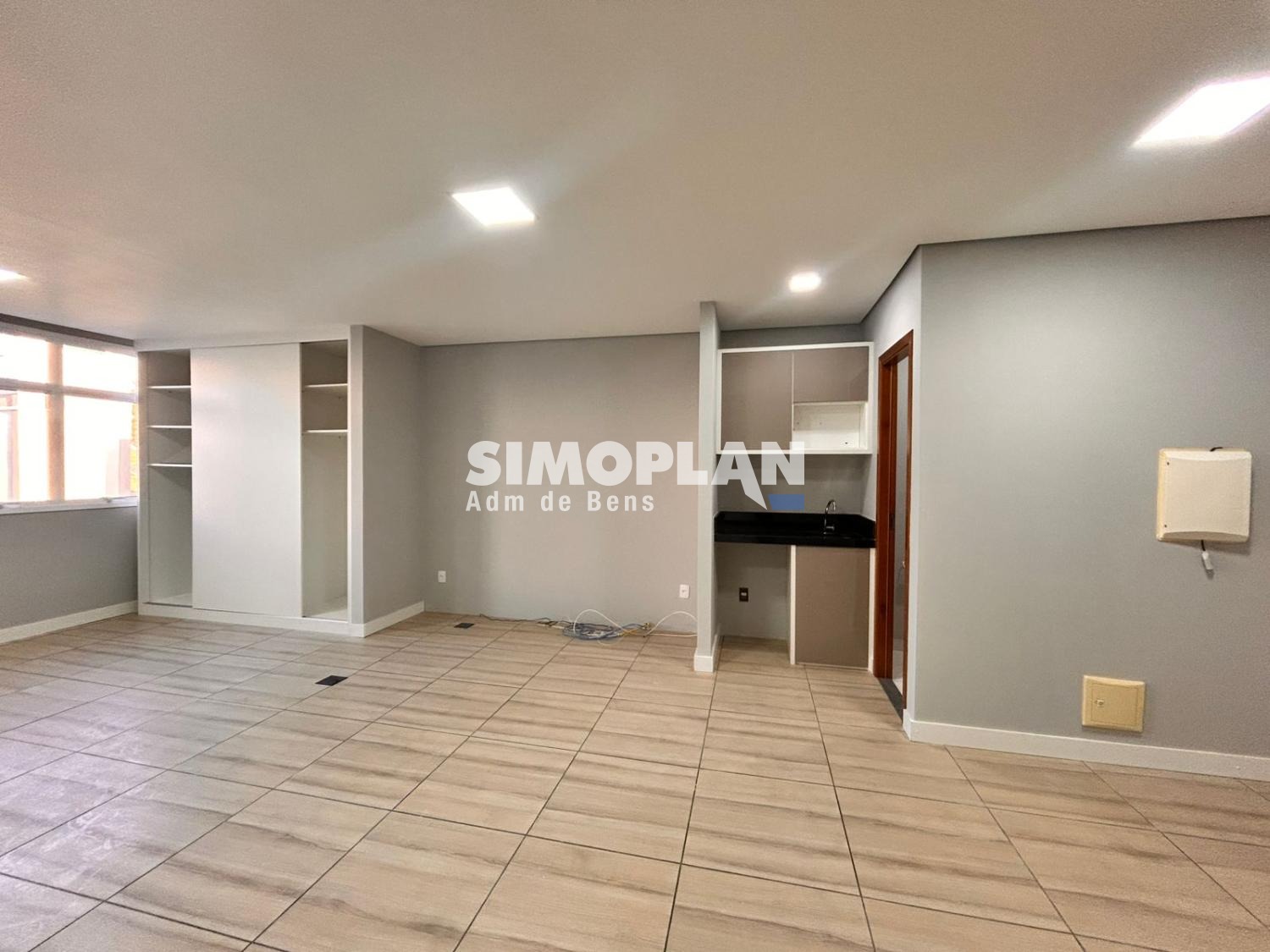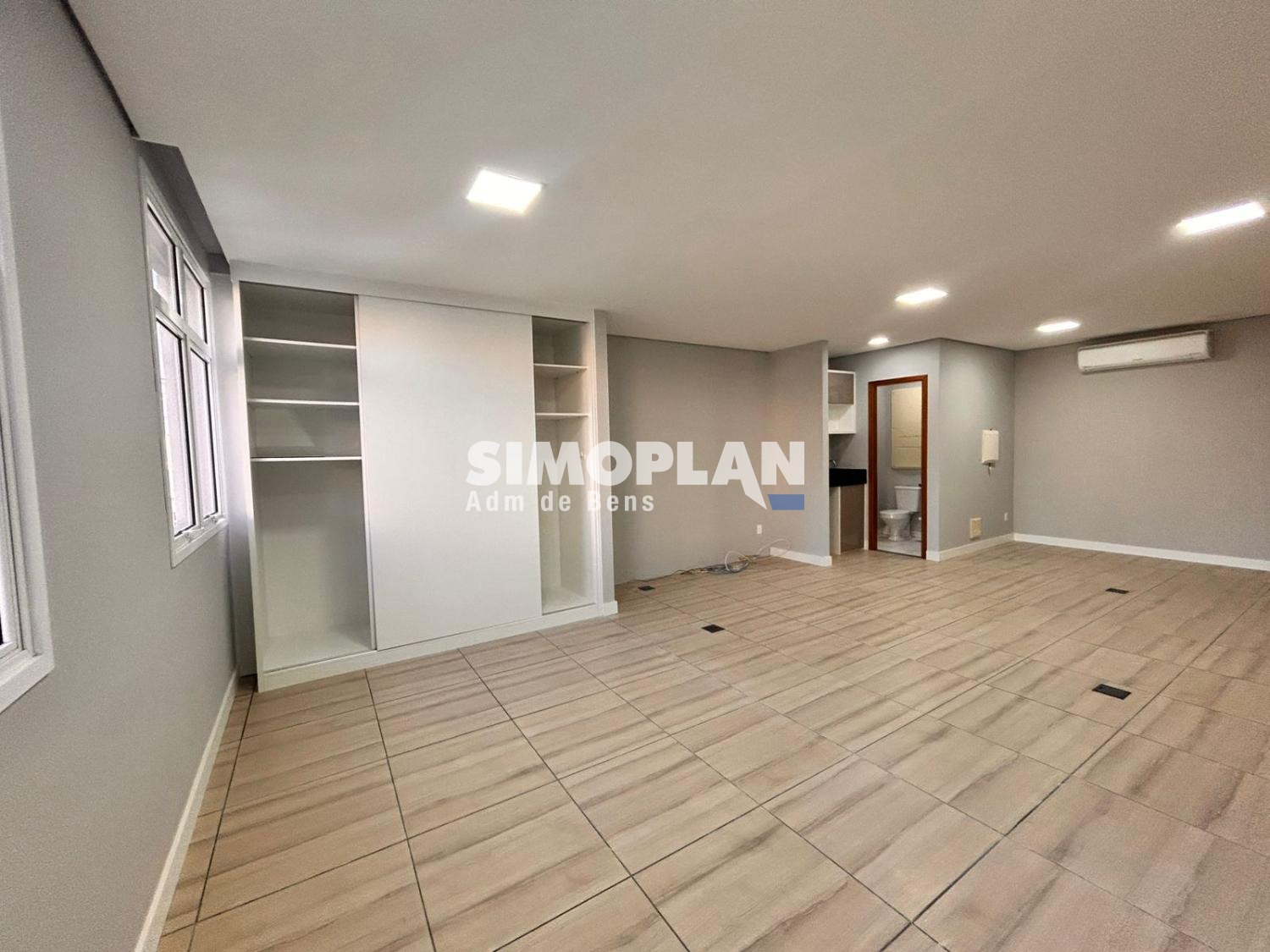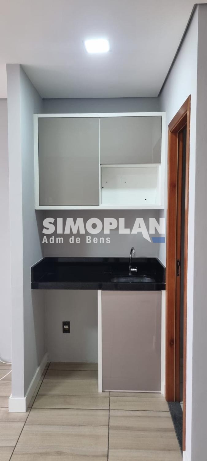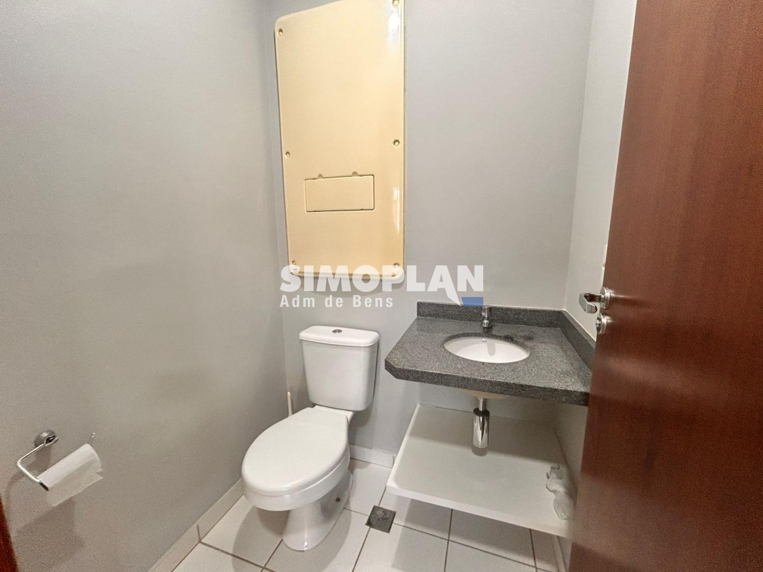 A sala é composta por ar condicionado, vaga de garagem, armário e uma copa.