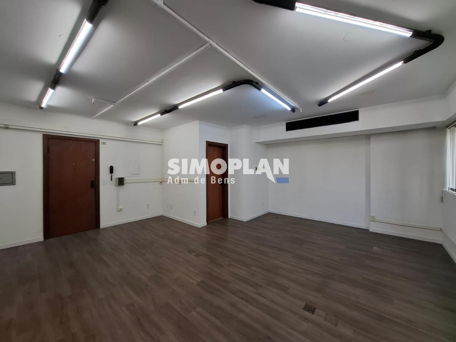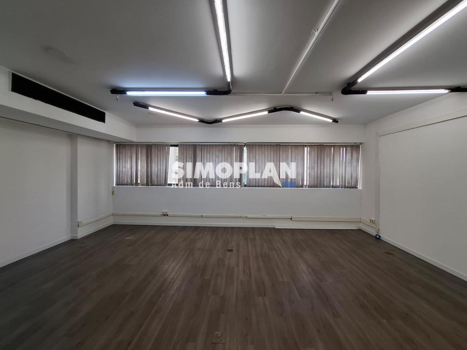 Composto por 1 sala sem divisórias, copa e banheiro. Com ar-condicionado central e uma vaga de garagem.